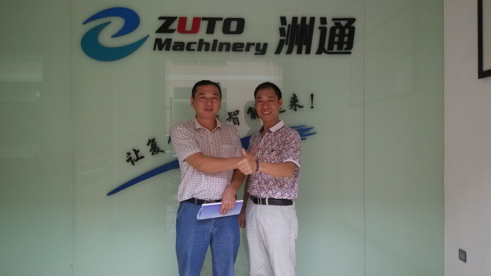 2016年10月25日,東莞厚街某加工廠客戶蒞臨洲通機械洽談單刀油糊機訂購事宜,我司黃總親自接待,并向客戶詳細介紹了我們洲通機械單刀油糊機產(chǎn)品的功能和特點,雙方的洽談十分愉快。最后,在充分地了解到我們的產(chǎn)品能滿足他們的生產(chǎn)需求后,這位客戶與我們簽訂了購機合同。