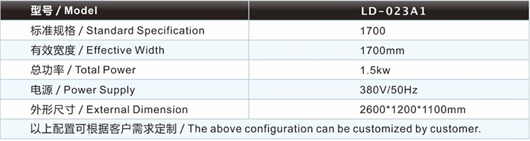 | 多刀分條機(jī)LD-023A1主要技術(shù)參數(shù) / Major technical parameters |
