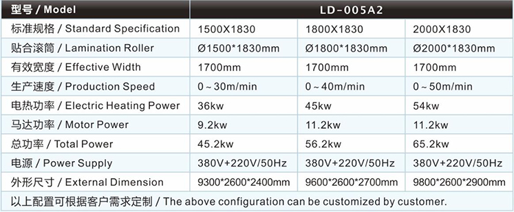 | 箱包復(fù)合機/貼合機-EVA強力膠復(fù)合機/貼合機LD-005A2的主要技術(shù)參數(shù) / Major technical parameters |