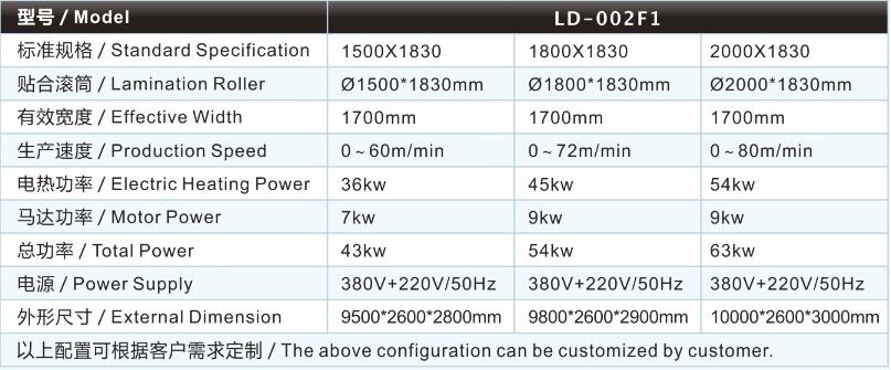 | 鞋材復合機/貼合機-橫立式雙槽水膠網(wǎng)帶復合機/貼合機LD-002F1主要技術參數(shù) / Major technical parameters |