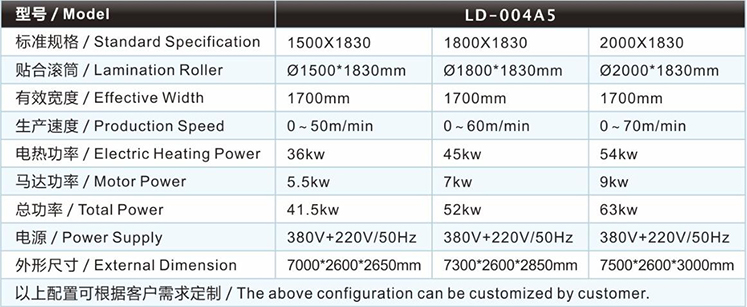 | 箱包復(fù)合機(jī)/貼合機(jī)-立式單槽水膠網(wǎng)帶無痕復(fù)合機(jī)/貼合機(jī)LD-004A5的主要技術(shù)參數(shù) / Major technical parameters |